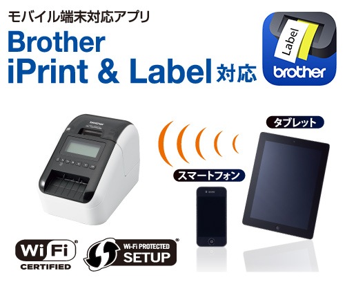 iPhone/iPod touch/iPadやAndroid搭載nスマートフォンやタブレットからQL-820NWBcを使って、ラベルに文字や写真を印刷することができます。